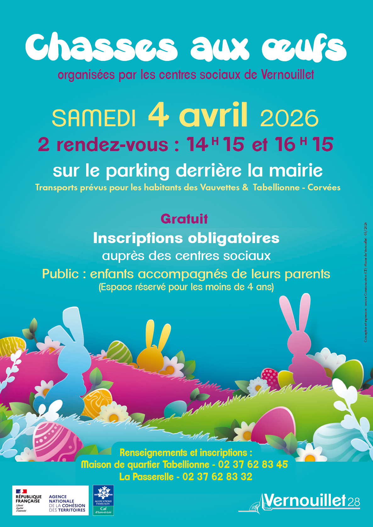 Les oeufs de Pâques vont passer à Vernouillet !Les centres sociaux de la Ville de Vernouillet organisent deux chasses à l'oeuf sur le territoire.