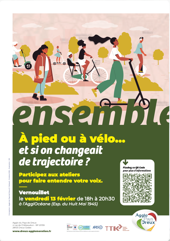 Dans le cadre de son Schéma Directeur des Modes Actifs (SDMA), l'Agglo du Pays de Dreux propose une démarche de concertation à ses habitants, afin de pousuivre le développement de la marche et du vélo, vers un territoire plus doux, sécurisé et accessible.