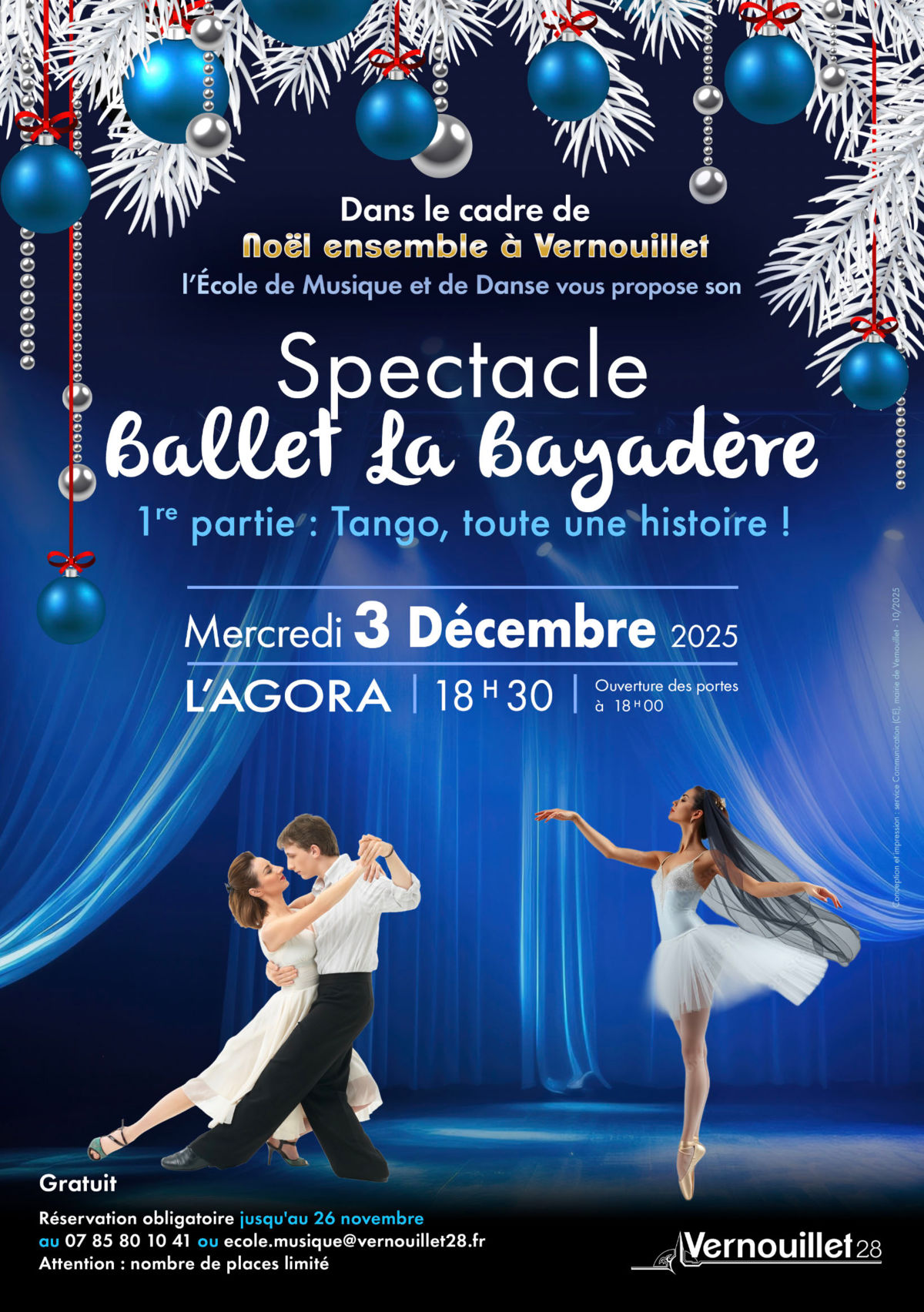 La Ville de Vernouillet vous convie au spectacle "Ballet La Bayadère" organisé par l'École de Musique et de Danse, le Mercredi 3 décembre à 18h30 à L'Agora.