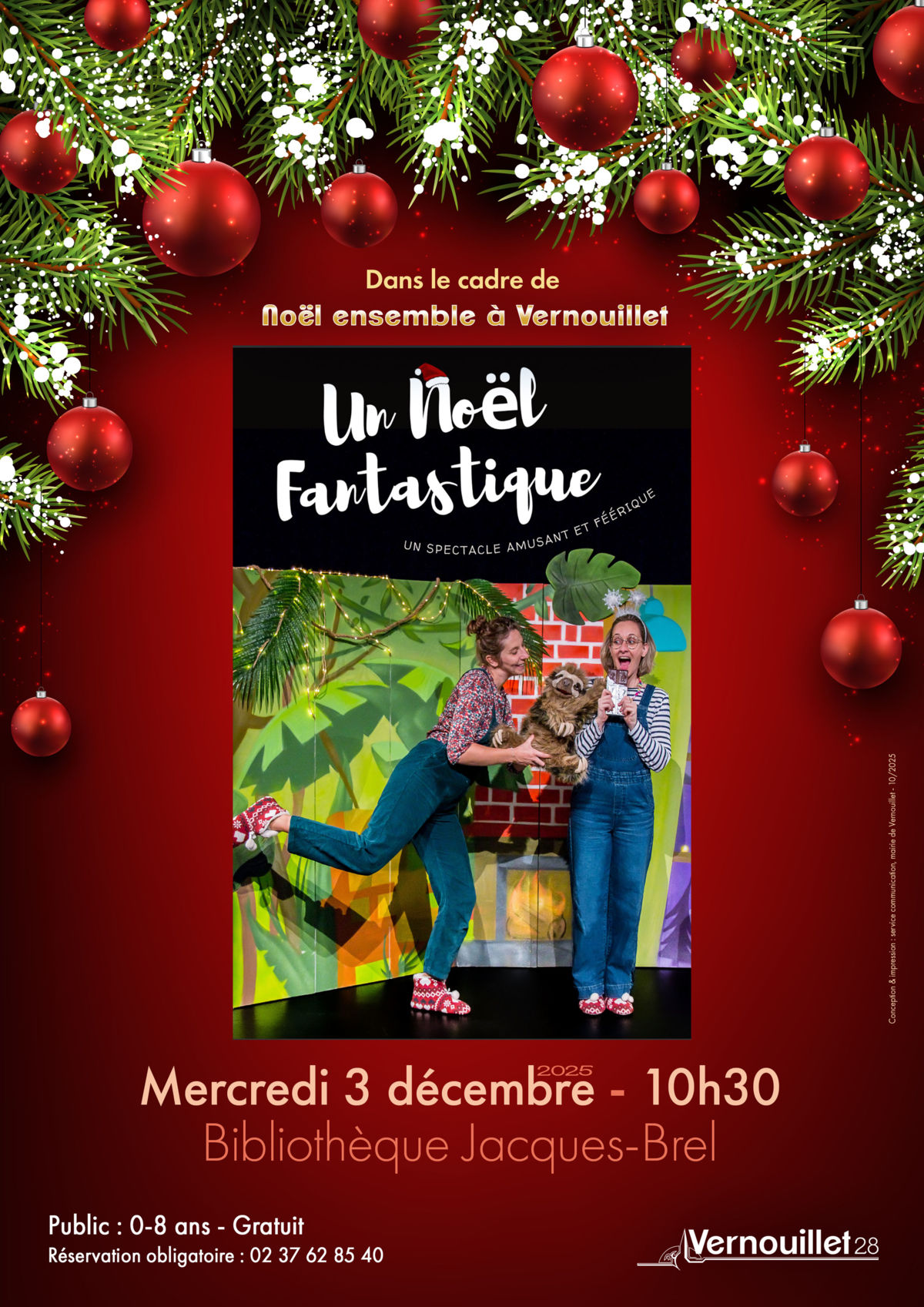 La Ville de Vernouillet vous convie au spectacle "Un Noël fantastique" organisé par la Bibliothèque Jacques-Brel, le Mercredi 3 décembre.