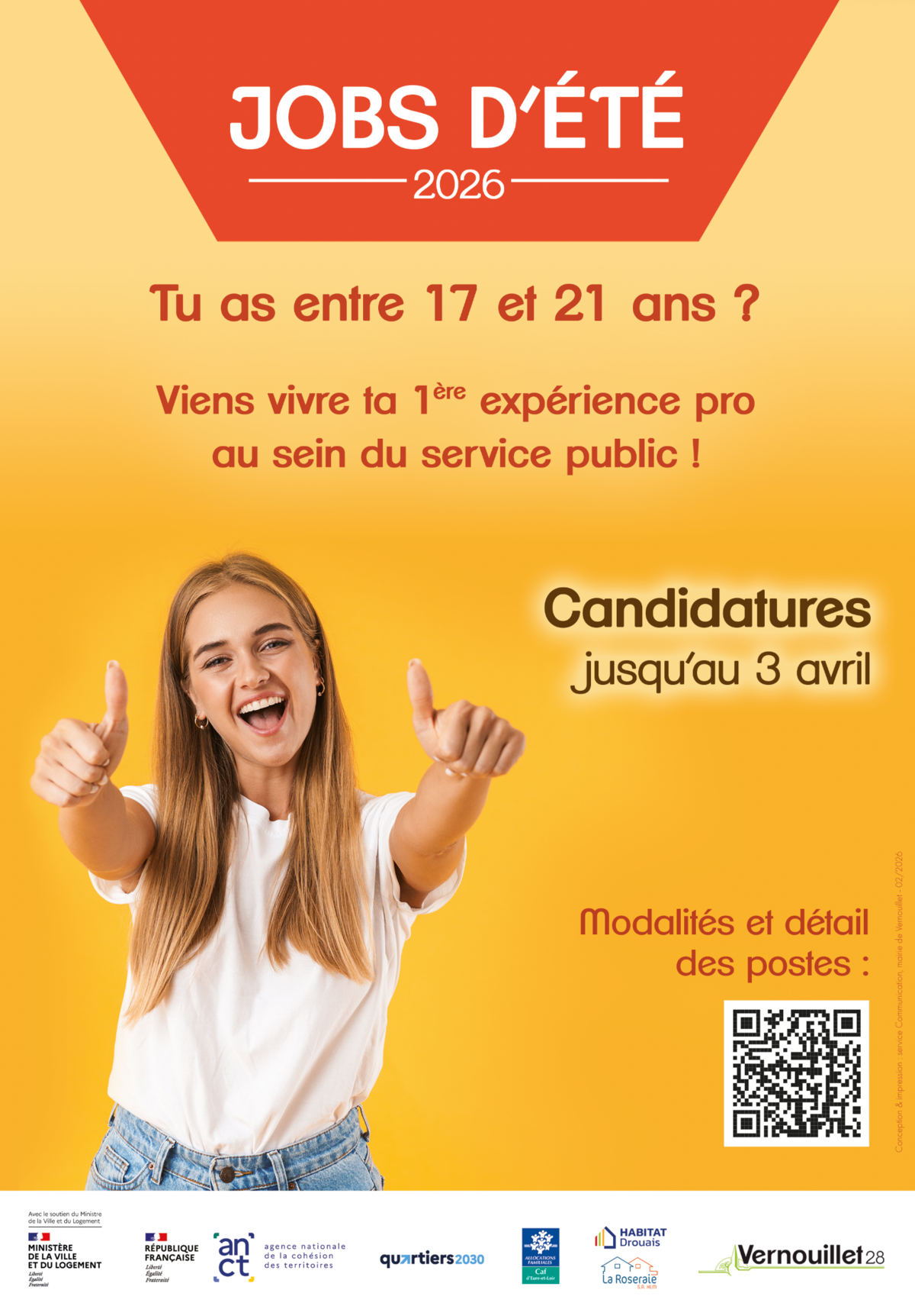 Très investie dans la politique en faveur de l’emploi et soucieuse de proposer aux jeunes vernolitains des tremplins vers le monde du travail, la ville de Vernouillet renouvelle cette année encore son opération « Jobs d’été - mon premier emploi au service du public ». Elle accueillera donc dans ses services, durant les vacances scolaires d'été, plusieurs jeunes de 17 à 21 ans qui souhaitent acquérir une première expérience... Cette année, nous propons 19 offres de jobs d'été.